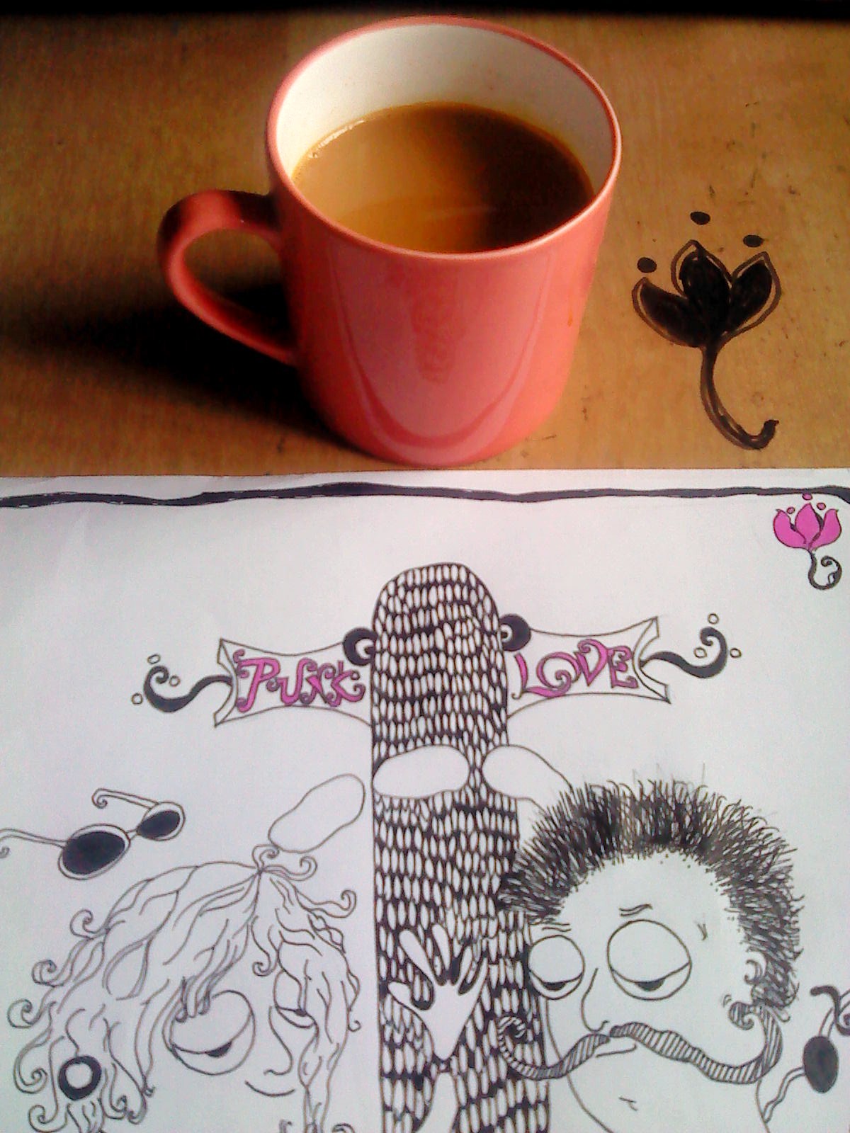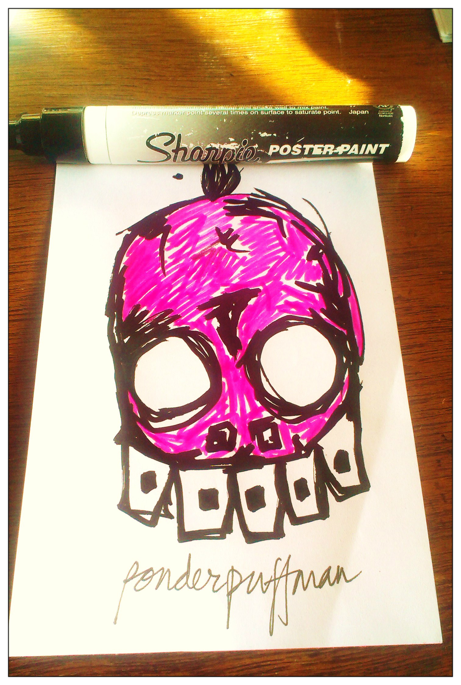 So here is little getting to know about the character – Dafty is a collage of doodles done with a Sharpie and an overzealous pop pink colour pen on small loose sheets.