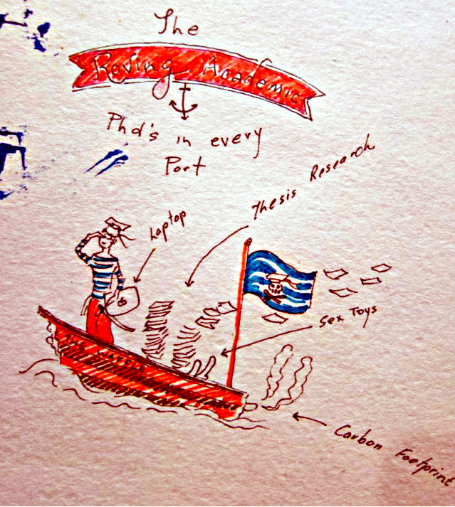 She prefers illustrating on A6 watercolour landscape Moleskins with any cheap felt-pens, black ball pens, Caran D’ache watercolour pencils, or Steadler Fine liner pen.