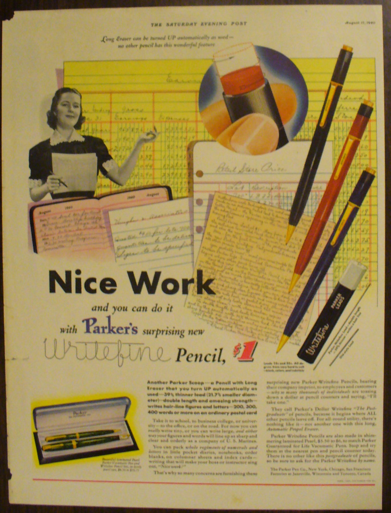 Parker Advertisement, August 17, 1940, Saturday Evening Post.